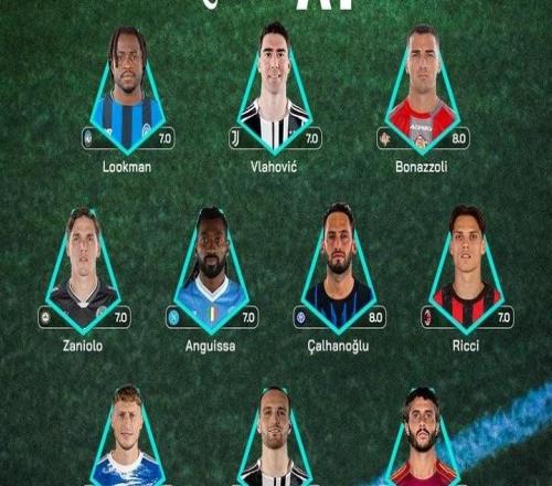 意甲第10轮最佳阵:卢克曼、DV9、扎鸟、恰20、里奇入选